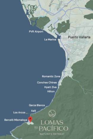 Strategically located in Mismaloya, Lomas del Pacífico offers premium accessibility, situated directly across from the beach along Highway 200. The development’s unique topography—nestled within the Sierra Madre mountain range—guarantees unobstructed views of the 'Los Arcos' landmarks and the Bay of Banderas. This 'jungle-meets-ocean' setting creates a high-demand environment for those seeking exotic, low-density residential opportunities.